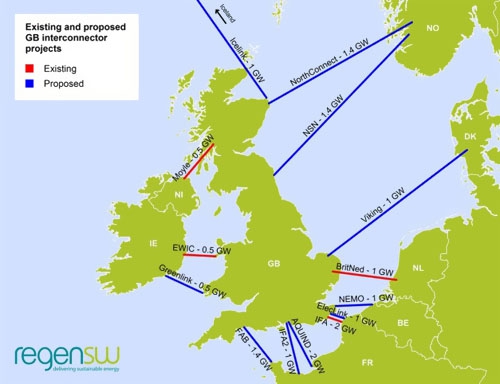 英國(guó)和法國(guó)的其他兩個(gè)銜接正在建造中。依據(jù)國(guó)家電網(wǎng)與法國(guó)RTE的協(xié)作,1 GW IFA2電力互聯(lián)項(xiàng)目將在今年冬天竣工。
